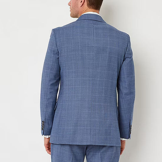 Men's Stafford Classic Fit Wool Blend Suit Jacket - Med Blue Plaid - 46R - NWT