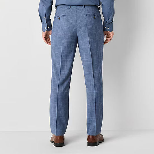 Men's Stafford Classic Fit Flat Front Wool Blend Suit Pants Blue Plaid 44x32 NWT