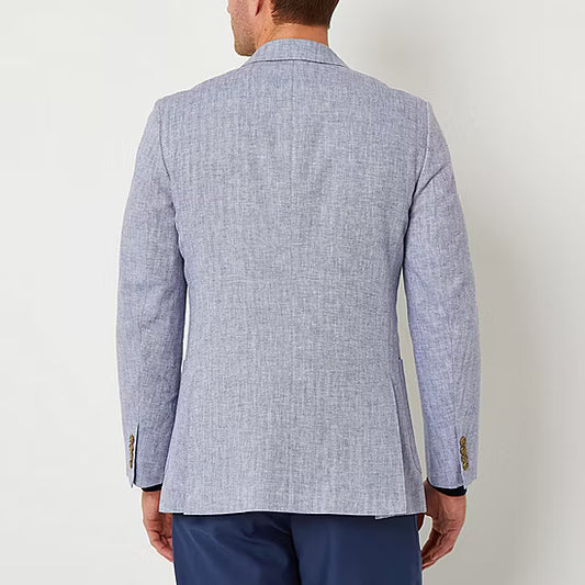 Men's Stafford Classic Fit Linen Blend Sport Coat - Indigo Herringbone - 42R NWT