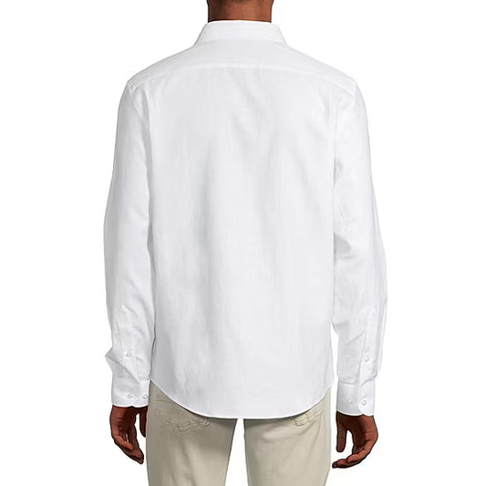 Men's Stafford Big & Tall Regular Fit Linen Blend Dress Shirt - White - XXL NWT