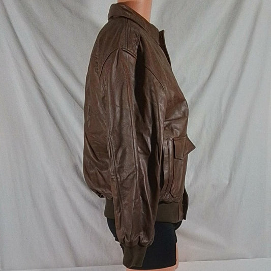 Men's Vintage Leather Nappa Aviator Jacket With Zip Out Lining - Brown - Var. Sz