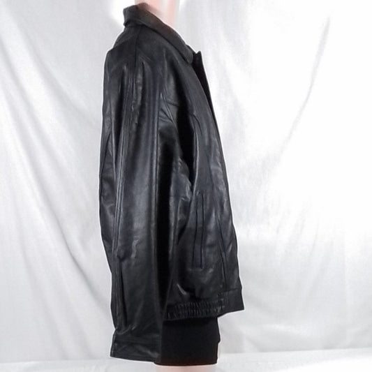 Men's Vintage Leather Big & Tall Lambskin Jacket - Black - 5XL - NWT