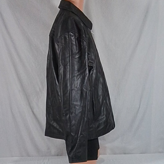 Men's Vintage Straight Bottom Leather Zipper Jacket - Black - XL - NWT