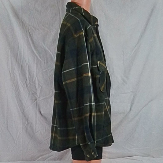Men's Victory Outfitters Sherpa-Lined Fleece Shirt Jacket - Olive Plaid - L -
