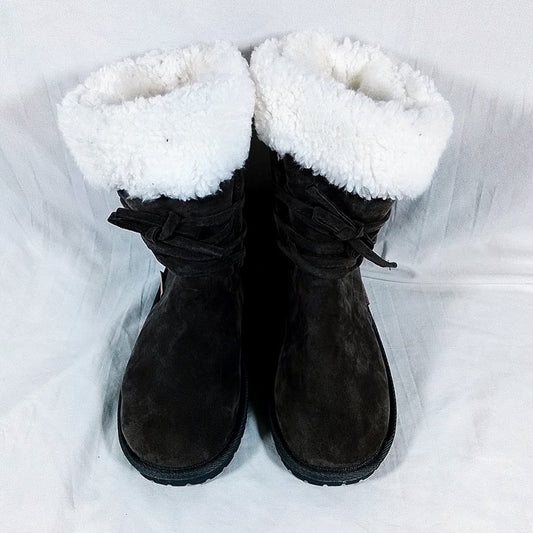 Muk Luks Melba Women's Faux Fur Lace-Up Winter Boots-Grey-Sz 9-Wide Fit-NWT