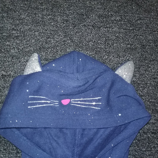OshKosh Girls Kitty Hoodie Sweatshirt Navy-New with Tags