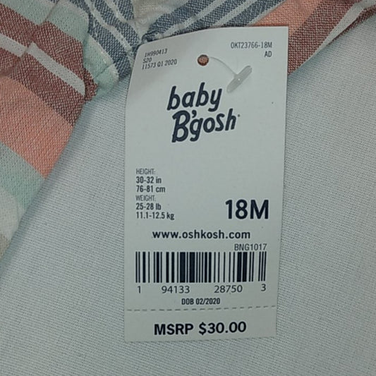OshKosh Collar Striped Cotton Romper-18M-New with Tags