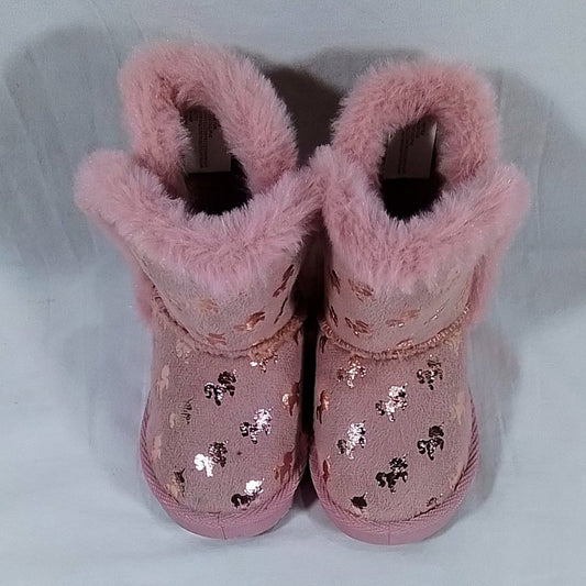 Olivia Miller Trisha Toddler Girls' Slipper Boots-Pink Unicorn-Faux Fur-Size 7