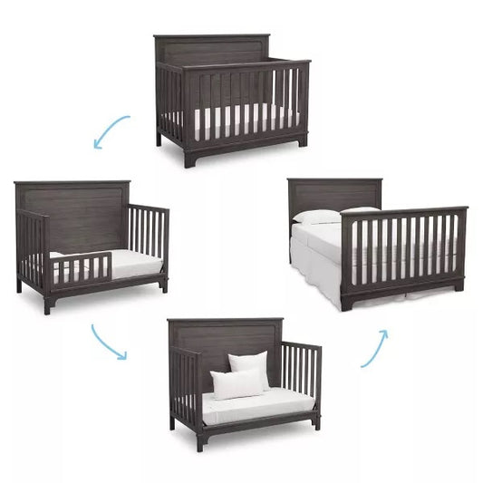 Simmons Kids' Slumbertime Monterey 4-in-1 Convertible Crib Rustic Gray. Open Box