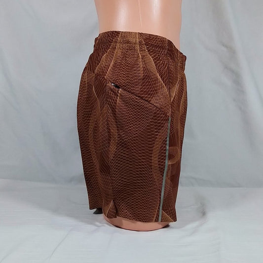 VRST Men's Accelerate 5 Inch Printed Running Shorts-Circulinear Earth Brown-NWT