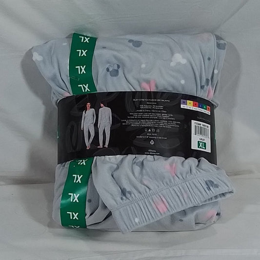 Women's 2-Piece Silky Stretch Fleece Pajama Set Mickey & Minnie Grey Sz: XL-NWT