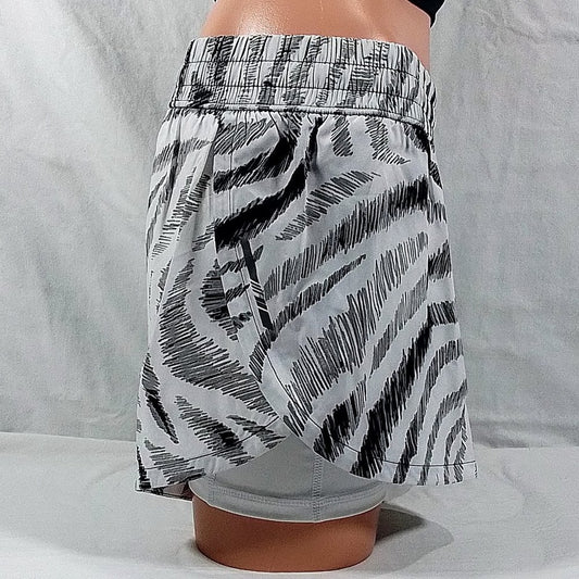 Women's 2-In-1 Printed Running Shorts-Trippy Zebra Black/White-Various Sizes-NWT