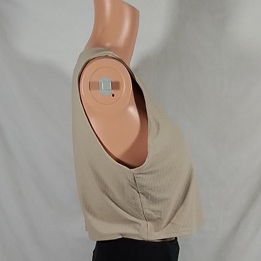 Women's Alpine Design Ribbed Cropped Tank Top W/built in Bra Light Beige-XXL-NWT