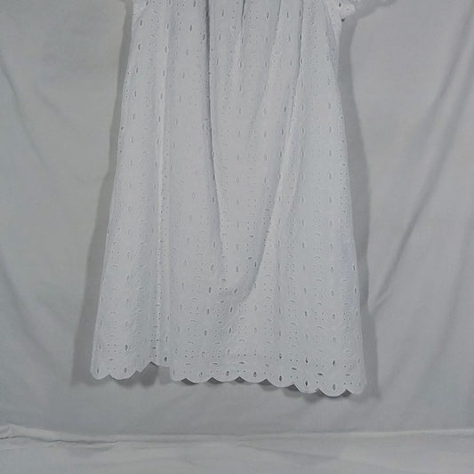 Women's Time & Tru Eyelet Dress Short Sleeve-Vivid White-XS-New with Tags