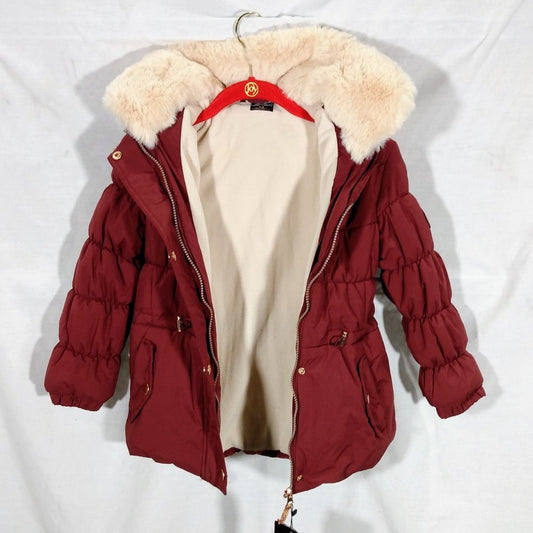 ZeroXposur Girls Puffer with Faux Fur Hood-Wine-7/8-New with Tags