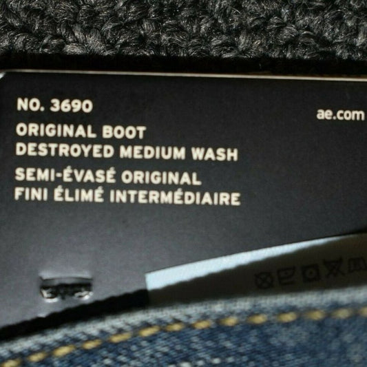 AEO Mens Original Boot Destroyed Jean - Med Wash No. 3690- 30" Inseam - NWT