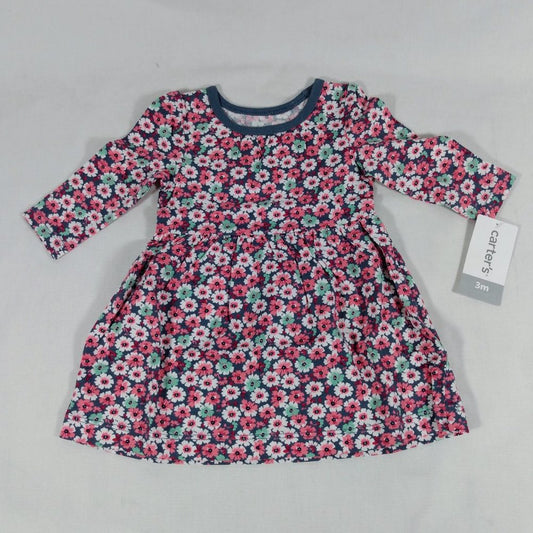 Carter's Babygirl 2 pk Dresses Floral and Navy with Cats Long Sleeve Dress NWT