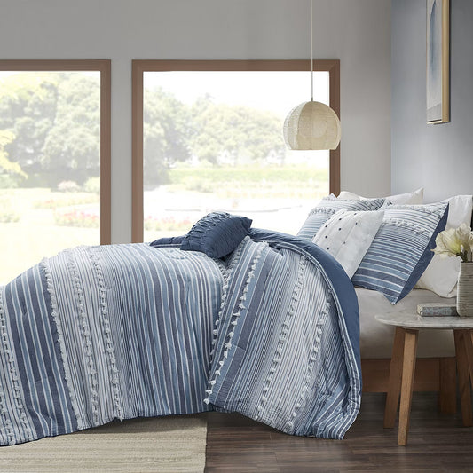 Pointehaven Pintuck Full Size 6 Piece Comforter Set Navy