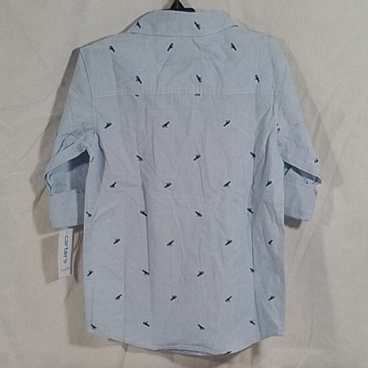 Boy's Carter's Dinosaur Print Button Down Shirt - Powder Blue - 8 - NWT
