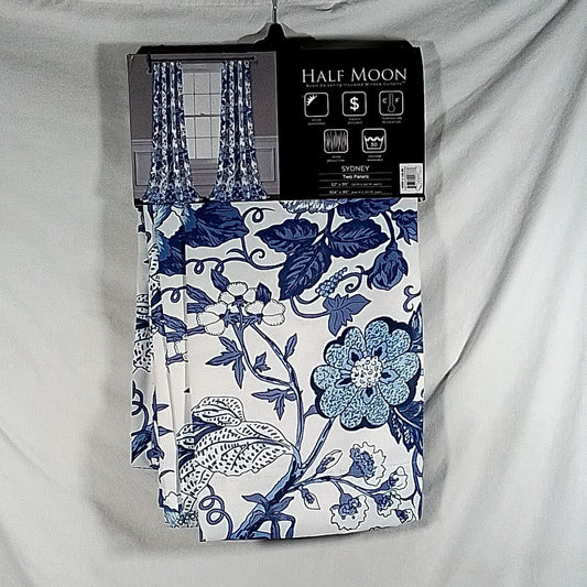 Lush Decor Sydney Navy/White Floral Rod Pocket Curtain Set 95"L-(A18)