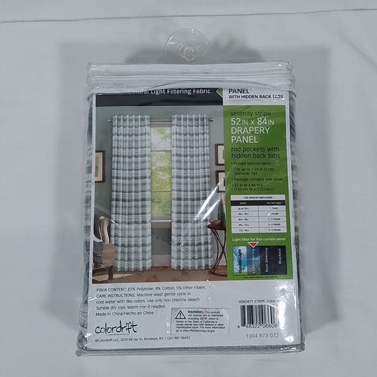Colordrift Striped Back Tab Room Darkening Curtain Panel Grey/Neutral 84"L-(A34)