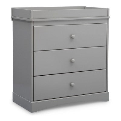 Delta Children Skylar 3-Drawer Dresser with Changing Table Top Gray. Open Box
