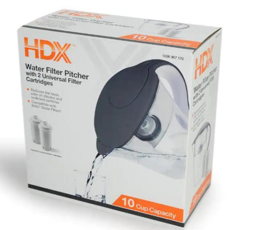 HDX 10-Cup Large Water Filter Pitcher w/ 2 Universal Filters-BPA Free