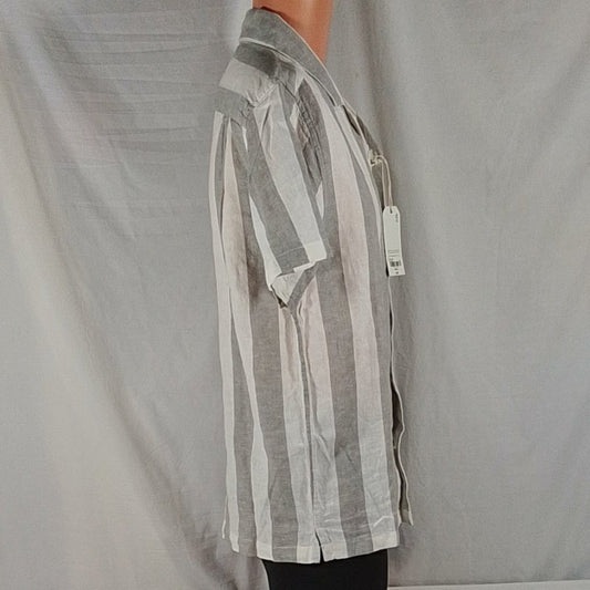Men's Mutual Weave Regular Fit Grey Striped Linen Button Down Size: Small - NWT