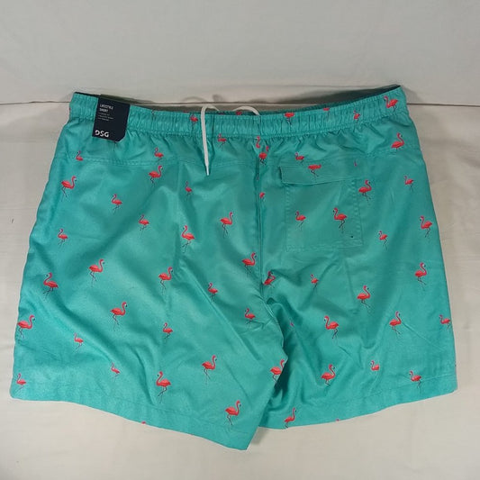 Men's 6 Inch Inseam Rec Shorts-Clean Sky Flamingos-Size 2XL-Drawstring-NWT