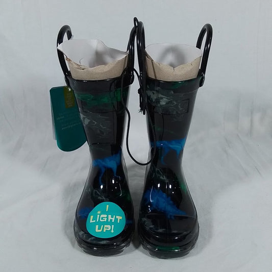 Kids Dinosaur Friends Lighted Rain Boot-Black-Size 5 Toddler-Light Up-Waterproof
