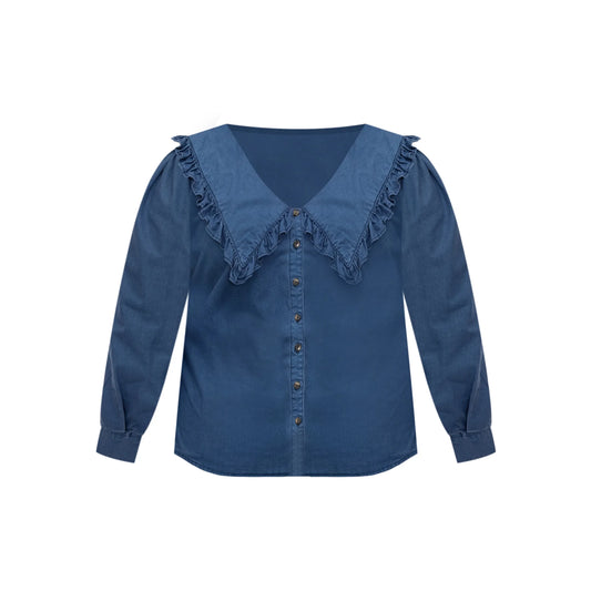 Women's ELOQUII Elements Plus Size Chambray Shirt w/Oversized Collar - Blue - 18
