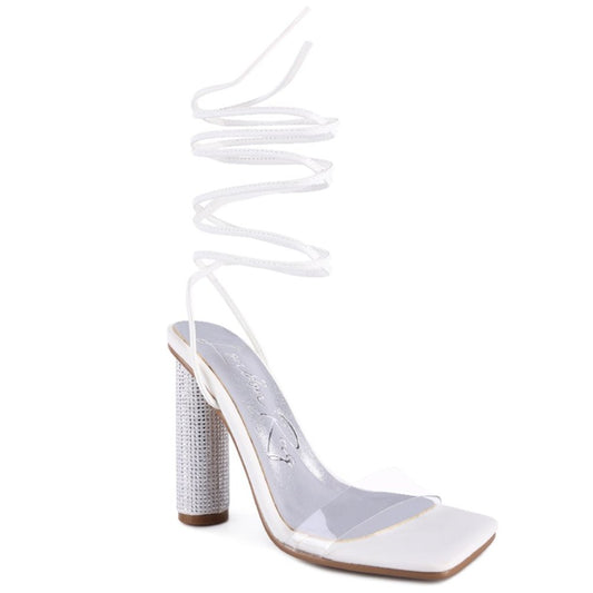 London Rag Scansta Lace-up Diamante Women's High Heel Sandals - 9 - White - NIB