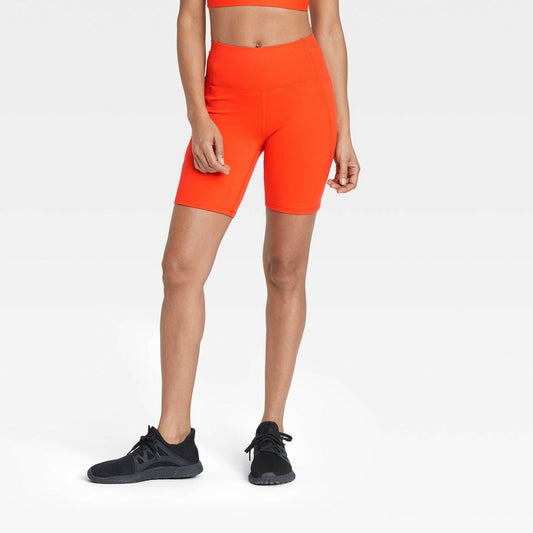 All in Motion Women's Brushed Sculpt Curvy Bike Shorts Vibrant Orange NWT