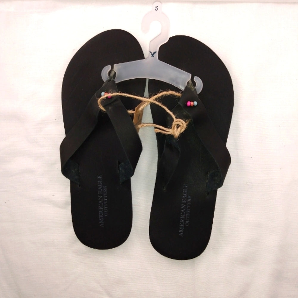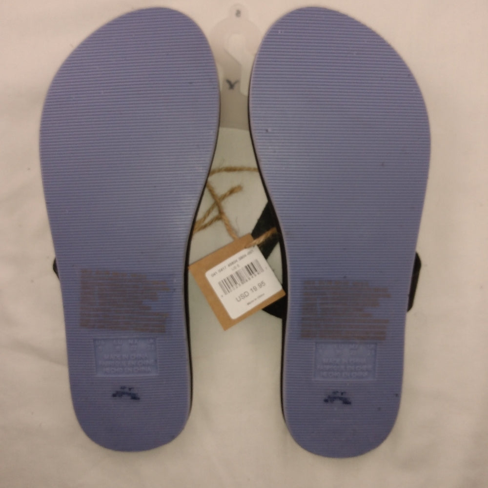 AE Women's Strap Leather Flip FLops Black New with Tags