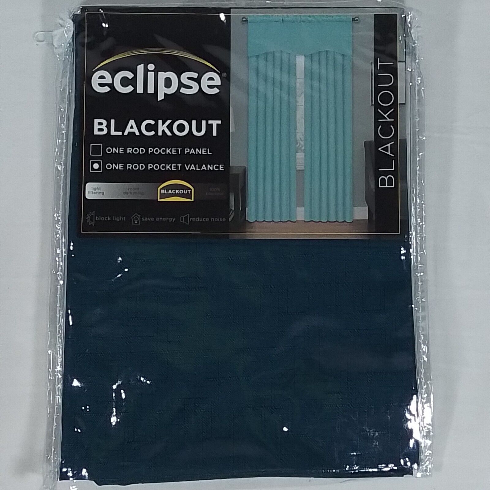 Eclipse Kendall Thermaback Blackout Wave Denim Single Rod Valance 42"Wx18"L