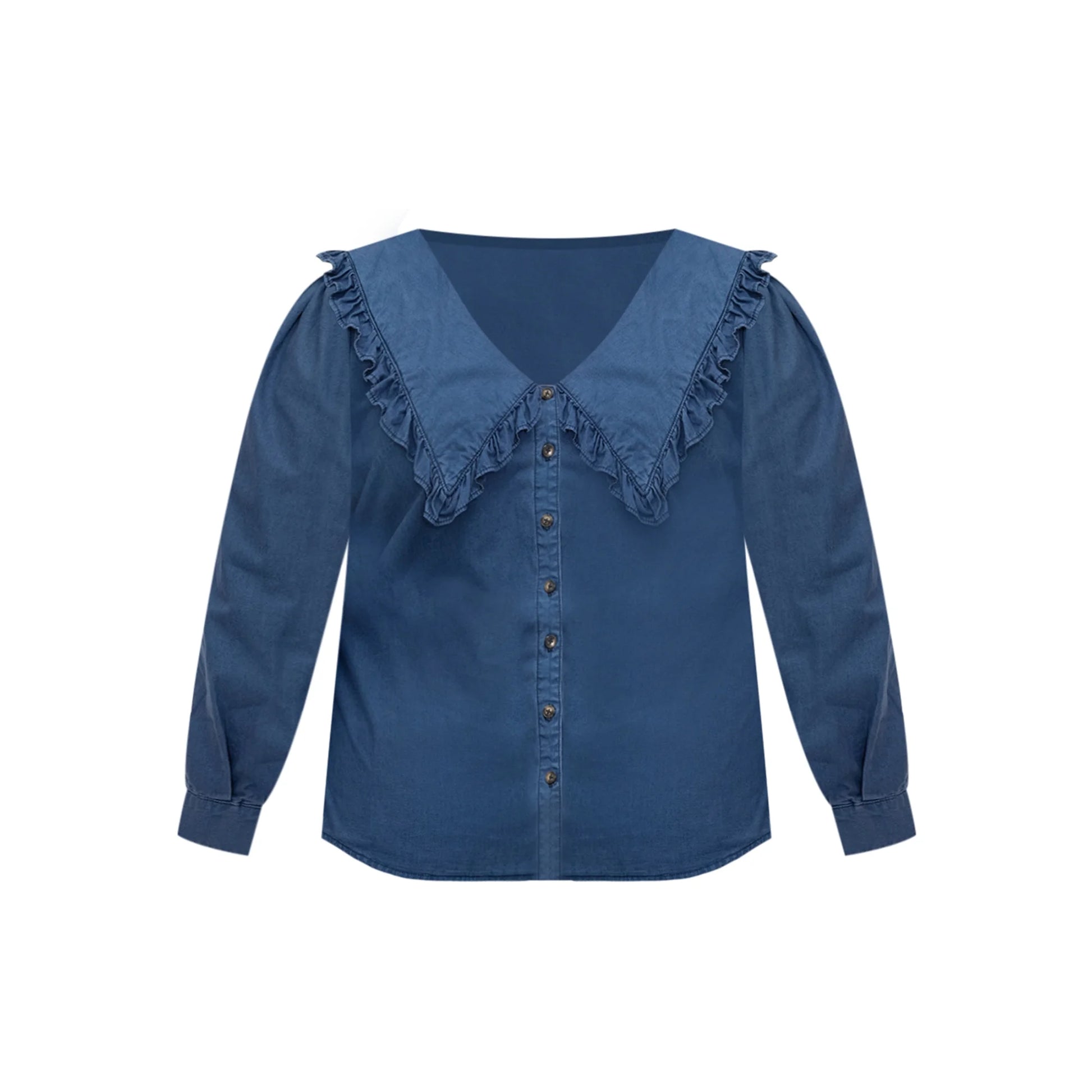 Collar: Oversized with ruffle trim