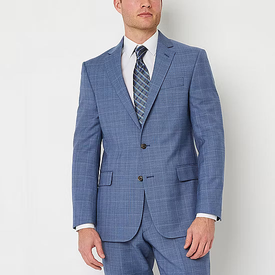 Men's Stafford Classic Fit Wool Blend Suit Jacket - Med Blue Plaid - 46R - NWT