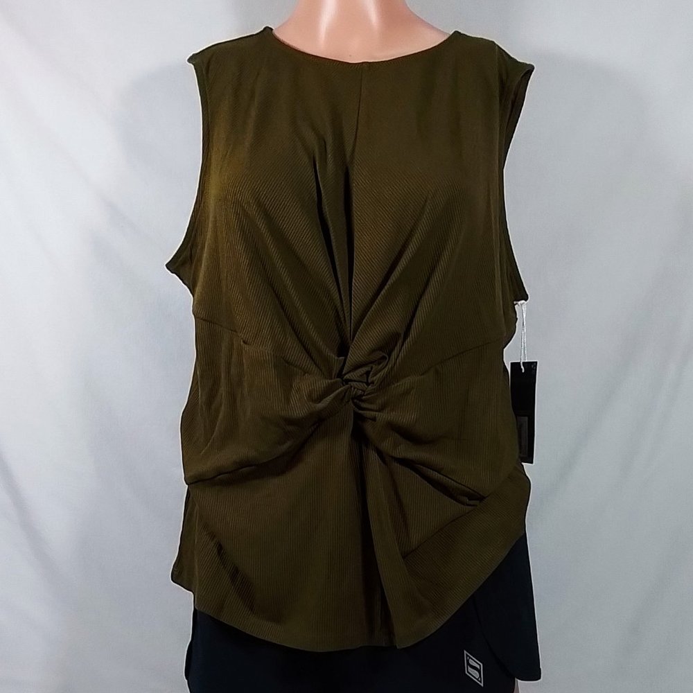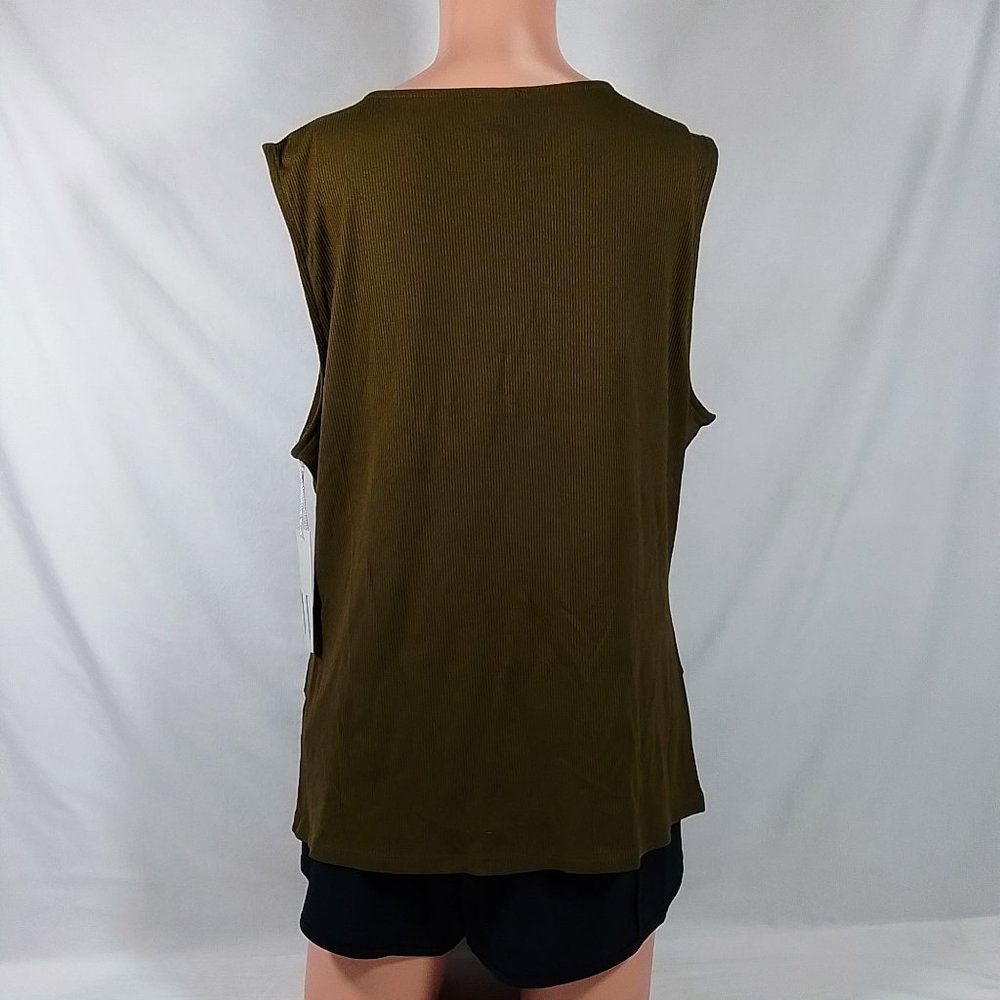 Women's Worthington Round Neck Sleeveless Tank Top-British Olive-XL-New with Tag